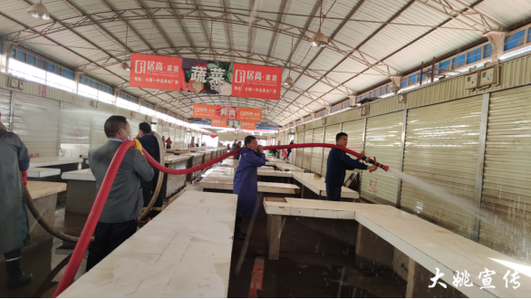 农贸市场是市容市貌的一扇窗口,为进一步提升我县农贸市场的整洁度,为广大市民群众营造干净、整洁的市场环境,近日,县市场监督管理局联合消防大队对永盛农贸市场、白塔农贸市场内地面、案板、下水道,以及周围排水沟进行了一次彻底的大冲洗、大消杀。