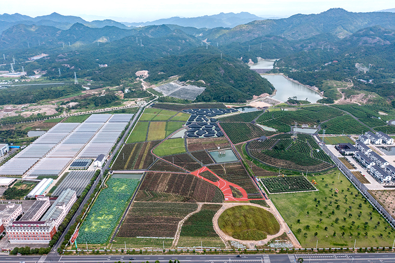 这是7月7日在浙江省东阳市花园村拍摄的现代农业生态园(无人机照片)。新华社记者 徐昱 摄