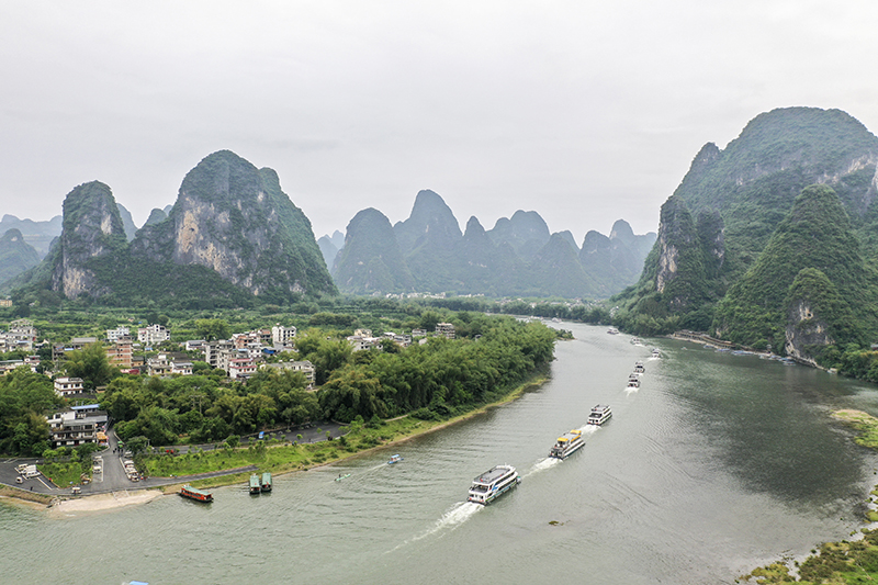 这是4月25日拍摄的漓江广西阳朔段(无人机照片)。新华社记者 曹祎铭 摄