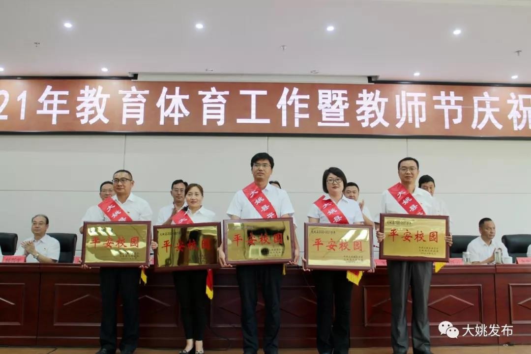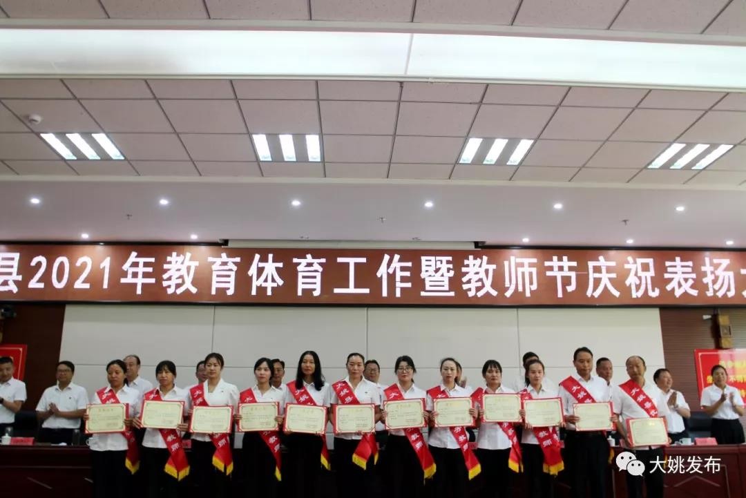 会上,县委副书记李开传宣读了《关于表扬2021年教育工作先进集体和先进个人的通报》,会议表扬了石羊镇等3个教育主体责任先进乡镇,大姚一中等11所质量先进学校,金碧小学等5所平安校园,马学美等5名优秀校园长,何兴昌等31名先进教育工作者,李亚等28名优秀班主任,王文婷等28名优秀教师,徐学翠等15名最美乡村教师,并为他们颁发了奖牌、证书。