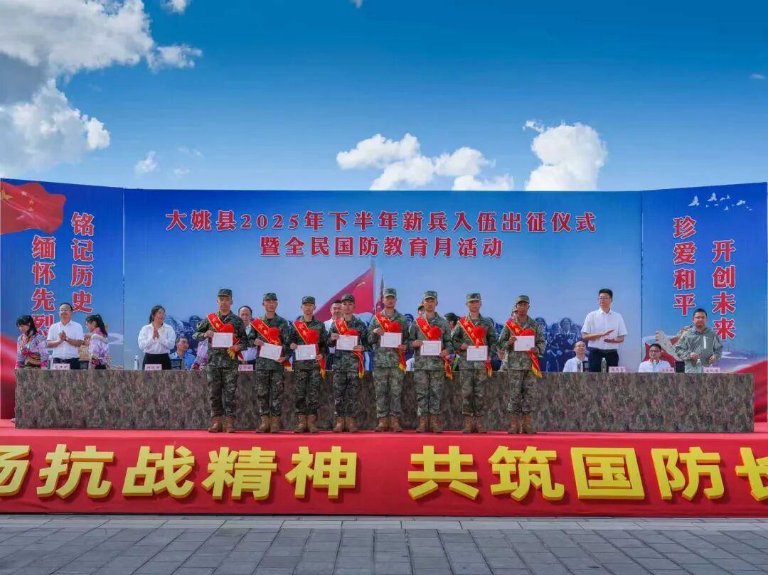 9月15日,大姚县在蜻蛉湖广场举行2025年下半年新兵入伍出征仪式暨全民国防教育月活动。40名新兵身着崭新戎装,胸佩鲜艳红花,带着家乡人民的殷切期望,奔赴军营,开启保家卫国的热血征程。