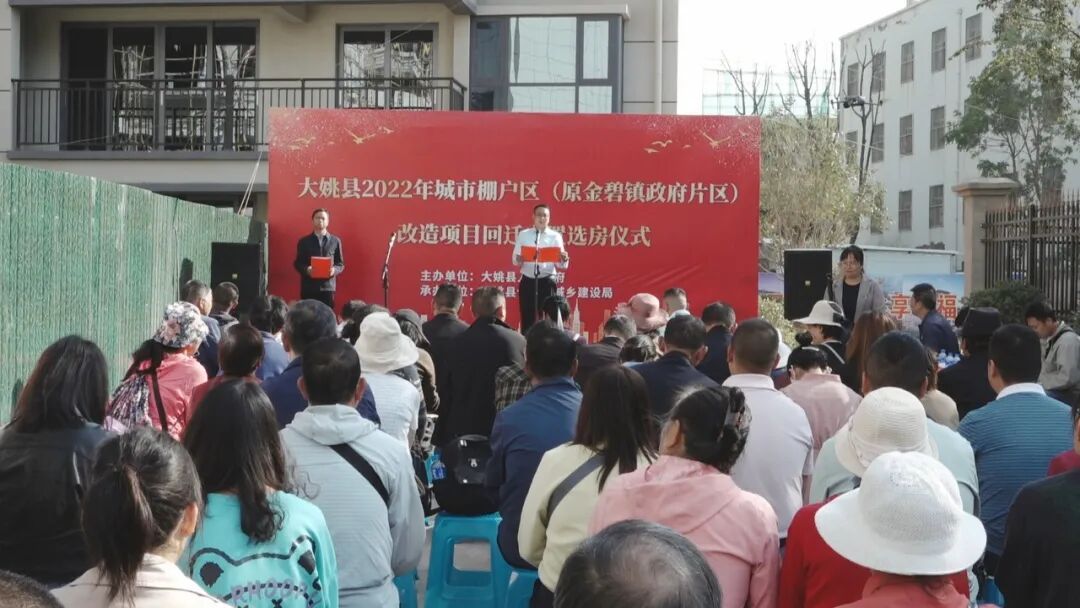 4月22日,大姚县举行2022年城市棚户区(金碧镇政府片区)改造项目回迁安置选房仪式。