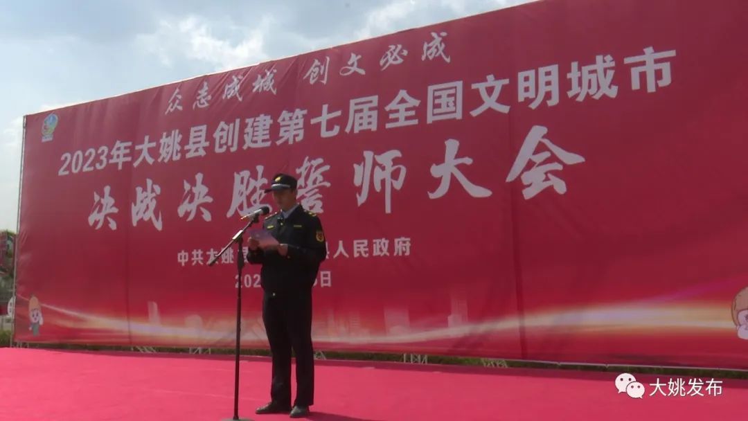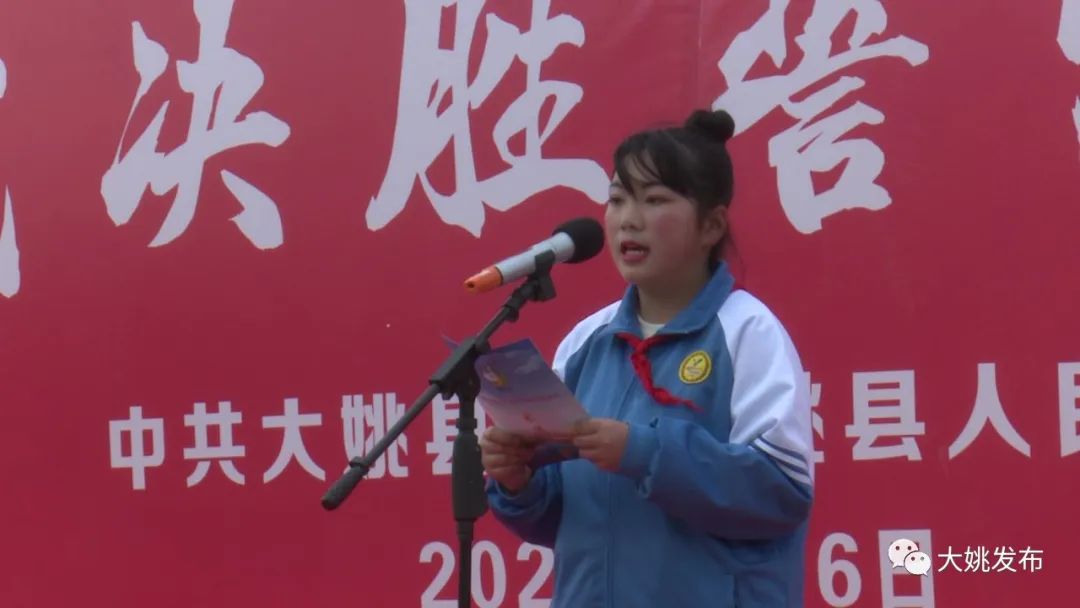 学生代表 夭怡说:同住一座城,共爱一个家!从现在做起,从身边做起,从小事做起!讲文明,树新风,当示范,作表率,争当文明小市民!小手拉大手,文明齐步走,为大姚创建全国文明城市贡献力量!