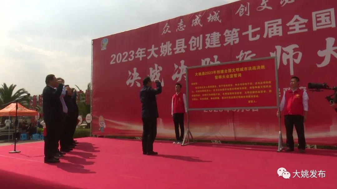 3月6日,我县在蜻蛉湖广场举行创建全国文明城市誓师大会,对全县创文工作再动员、再部署、再鼓劲、再冲刺,确保克期实现创建全国文明城市目标任务。