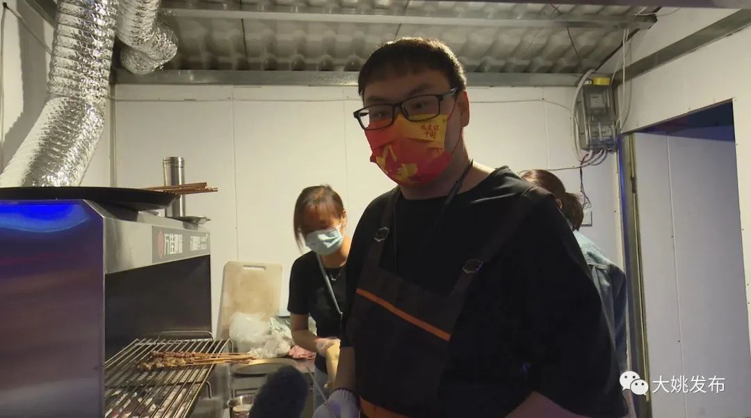 商家李丹说:“我们大姚开这个街特别的好,像今天的人流量也相当的大,我做这个主要是宣传一下我们大姚的本地山羊,还有荞粑粑,大家可以来了解一下,今晚上生意还是可以的,一天差不多要一只羊。”