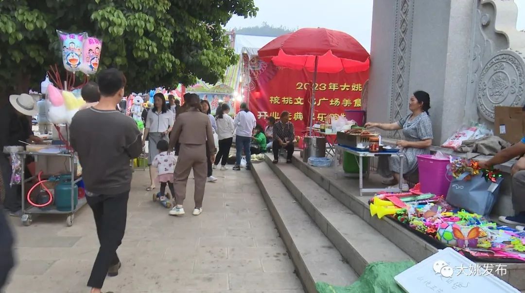 走进美食街,烤羊肉香、烤玉米香扑鼻而来,叫卖声、谈笑声不绝于耳。市民们三个一群,五个一伙前来游玩、购物,越往前走,越是热闹,展销位的商品琳琅满目,服装、玩具、糖果、土特产、日用百货,应有尽有,男女老少纷纷驻足选购;秋千、蹦床、沙池拓展等儿童项目,让孩子们那旺盛的精力得到尽情发挥;文艺展演亮点频出,精彩纷呈的节目引得看客们将舞台围的水泄不通,掌声、欢呼声点燃了大姚的夜晚。