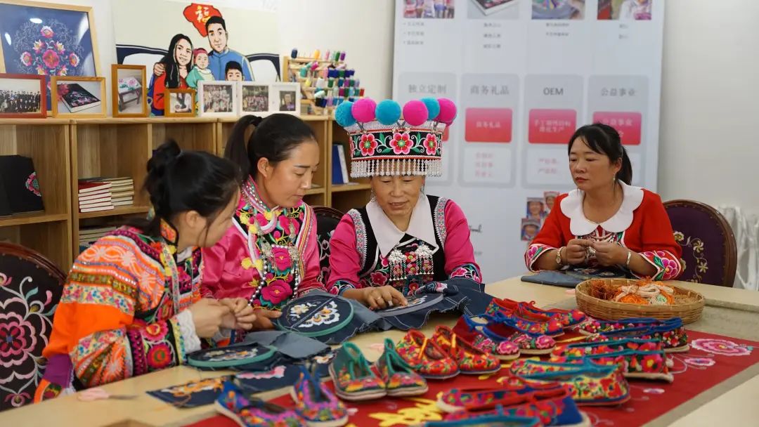 走进大姚县纳苏民族手工艺品发展有限公司彝绣车间,绣娘们飞针走线地为新一批订单忙碌着。“订单很多,我和姐妹们每天都在赶货,加班加点成为常态。”公司技术总监、被绣娘们称为“蜻蛉巧手”的张琼芬自豪地对记者说。张琼芬的自豪,源于她多年深耕彝绣技艺传承和发扬,把曾经藏于深闺的精巧彝绣产品从家用变为商品,让传统彝绣从小家庭走上广阔的大市场,给绣娘们带来美好生活。