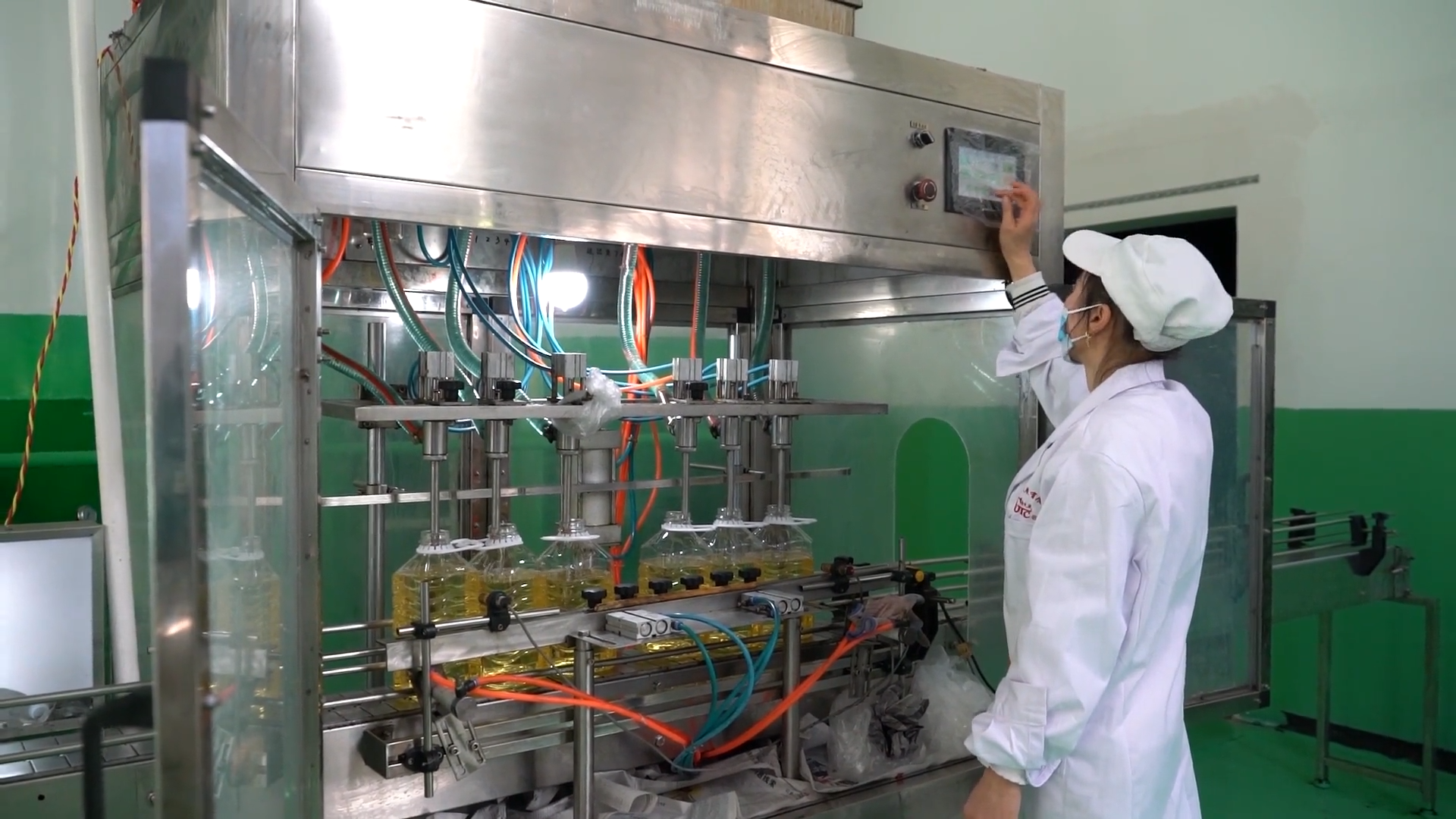 大姚县建成的“水代法”生态制取核桃油生产线包括A1深度学习核桃仁精选机、紫外线杀菌机、斗式提升机、水代生态取油机等13个部分组成,可实现每小时加工核桃仁800公斤,每小时生产核桃油400公斤,月均产能达100吨以上,年产能达2000吨以上。