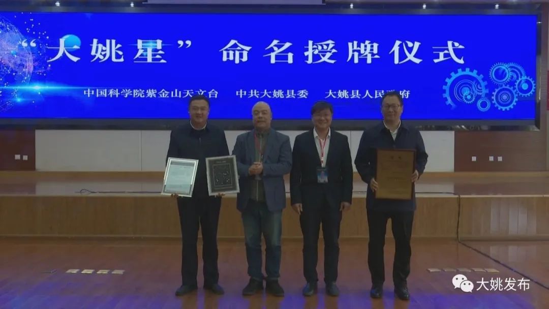 12月4日,我县举行“大姚星”命名授牌仪式。中国科学院紫金山天文台副台长吴雪峰宣读了国际命名公报并向县委书记王丽平赠送了“大姚星”命名证书和命名铜匾。