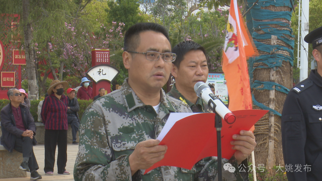 (县人民政府副县长、县森林草原防灭火指挥部常务副指挥长 马学富宣布大姚县2024年“无火清明”“平安五一”携装巡护专项行动正式启动。)