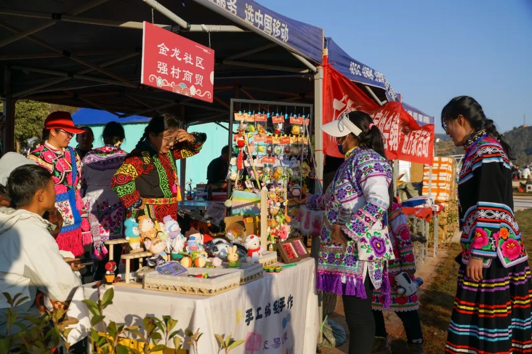 写春联、彝族刺绣、花灯提游等年味十足的民俗活动特别引人驻足。各类美食摊位上,铁皮卡咖啡、野坝子蜂蜜、小土饼、菜盒子等地方特色食品散发着诱人的香气,吸引了众多群众驻足品尝。整个市场人流如潮,喜庆的氛围让每个人的脸庞都洋溢着幸福的笑容,仿佛是播撒在这片土地上的希望与快乐。