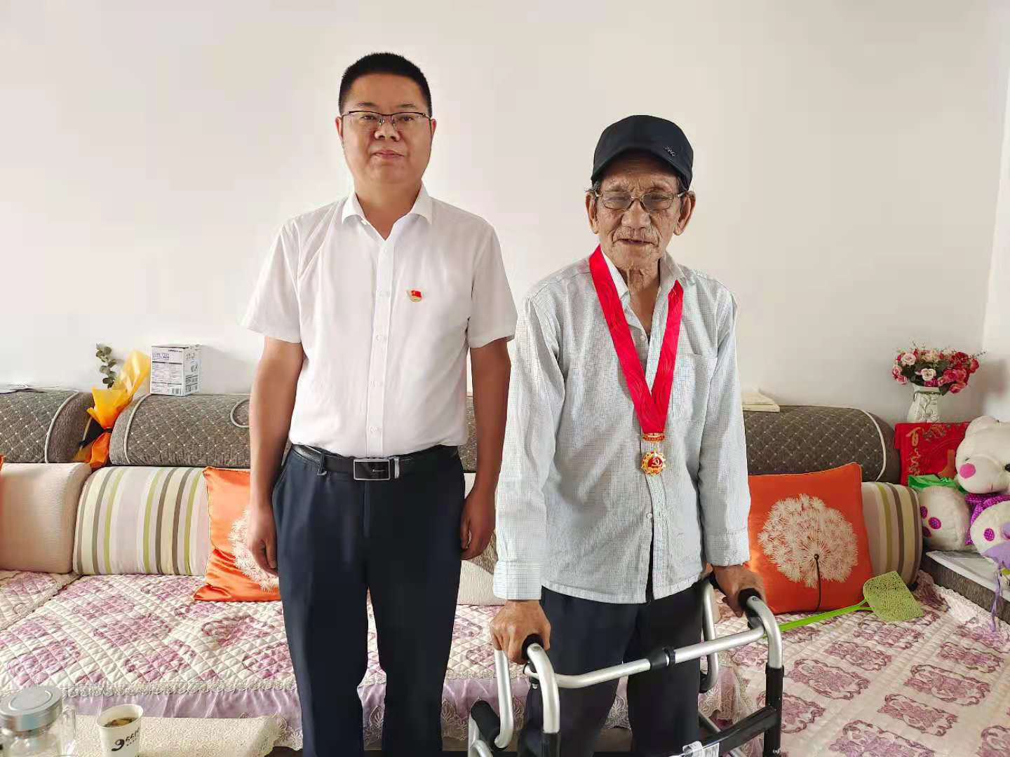 在举国欢庆建党100周年盛大节日之际,大姚县农业农村局党委书记、局长李红亮同志带队慰问了局属部分退休老党员,为已80岁高龄,行动不便,党龄超过50年的老党员吴玉洪同志亲手戴上“光荣在党50年”纪念章。