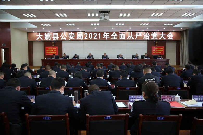 3月8日上午,大姚县公安局在县政务中心视频会议室召开2021年全面从严治党大会。会议全面贯彻党的十九大和十九届二中、三中、四中、五中全会精神,认真贯彻落实十九届中纪委五次全会、省纪委十届六次全会、州纪委九届六次全会、县纪委十四届六次全会精神。县人民政府副县长、县公安局党委书记、局长潘健同志作题为《坚持政治建警全面从严治警 深入推进全县公安机关党风廉政建设工作再上新台阶》的党风廉政建设报告,县公安局党委副书记、政委董勇同志作题为不忘初心、牢记使命 以党建带队建努力锻造“四个铁一般”过硬大姚公安铁军的队伍建设报告,回顾2020年度队伍建设、党风廉政建设工作,全面总结分析当前形势和不足,部署了2021年队伍建设、党风廉政建设重点工作。