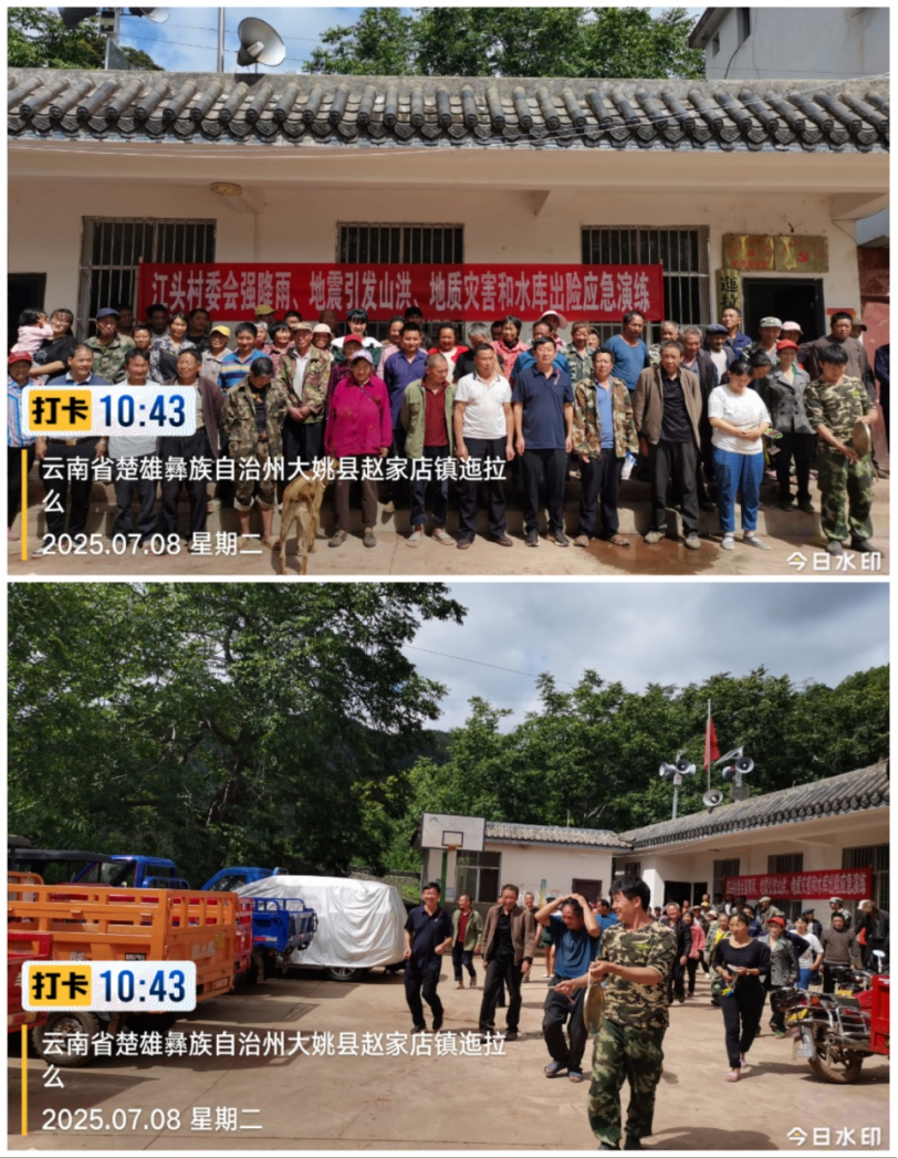 当前正处于主汛期,强降雨过程和强对流天气频繁,洪涝灾情比历年同期偏重很多,极易引发山洪、泥石流、滑坡、局部塌方等自然灾害,交通要道受损、房屋及农田被淹等风险增加。为避免造成人民群众人身伤害和财产损失,全面检验镇村两级应急响应能力,切实提升应对自然灾害的应急处置能力和群众防灾避险意识,连日来,赵家店镇在辖区12个村(社区)全面开展以“强降雨、地震引发山洪地质灾害、水库出险”为主题的应急演练,全力打通防灾减灾“最后一公里”。