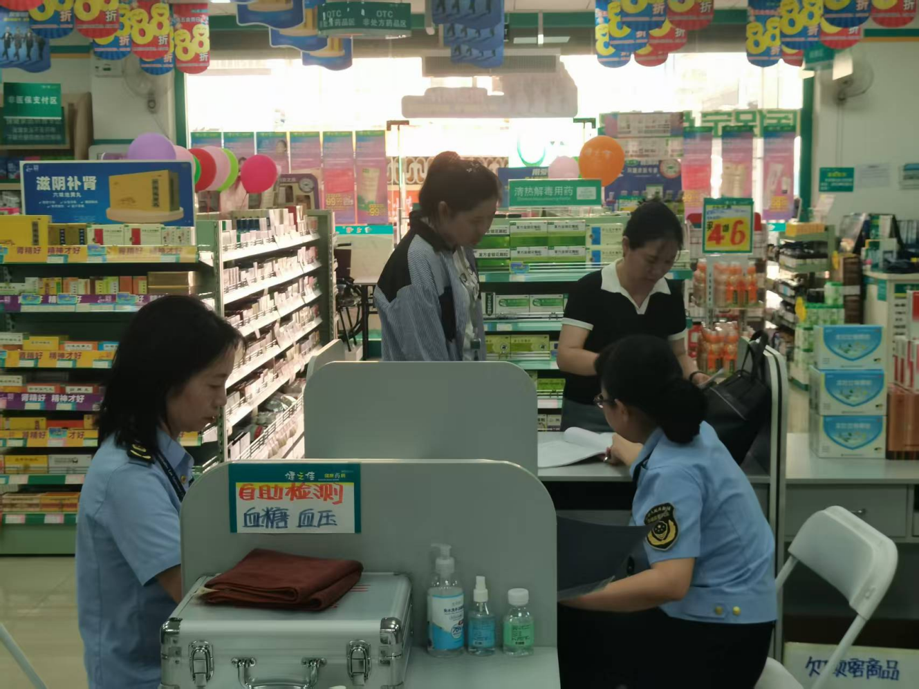 现场化指导,服务监管零距离。坚持“监管+服务”双轮驱动,深入一线现场指导,围绕药品进货查验、分类管理、储存条件、制度建设等方面提出针对性整改建议,有效提升经营单位自查自纠和依法经营意识。