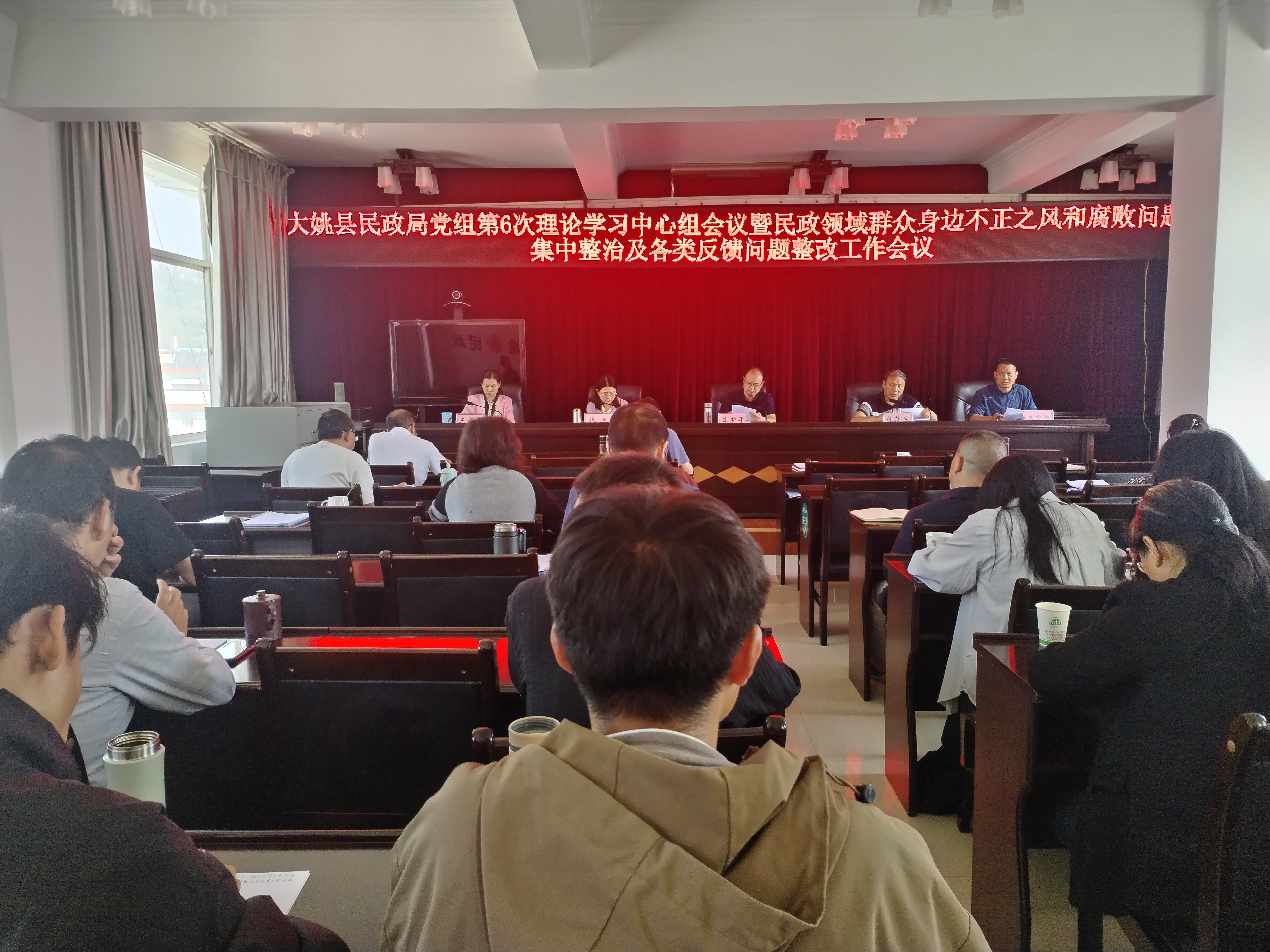 会议深入学习习近平总书记关于党的自我革命的重要思想;传达学习省、州有关群众身边不正之风和腐败问题集中整治推进会议精神,涉及民政领域11类集中整治、发现问题、反馈意见整改的股室负责人围绕“反馈问题内容、整改落实情况、改进措施”三个方面作汇报;局党组班子成员结合工作整改推进情况,对如何抓好分管领域整改整治反馈问题作安排;主要领导作会议讲话,并提出下一步整改工作要求。