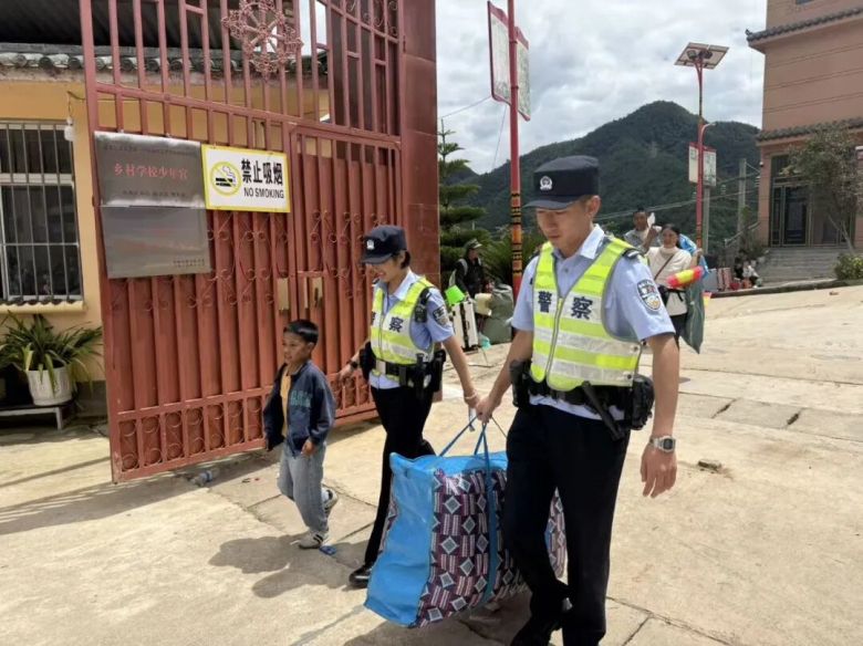 三、暖心瞬间,守护“最美的身影”。护学岗上,民警伸手接过低年级学生的沉重行囊,细心地为匆忙赶路的学生整理行李,认真查看是否有安全隐患的物品进入学校,耐心地向问路的家长指引方向……这些看似平凡的举动,汇聚成了开学季里最动人的风景线,也让“警察蓝”成为了孩子们心中安全的象征。