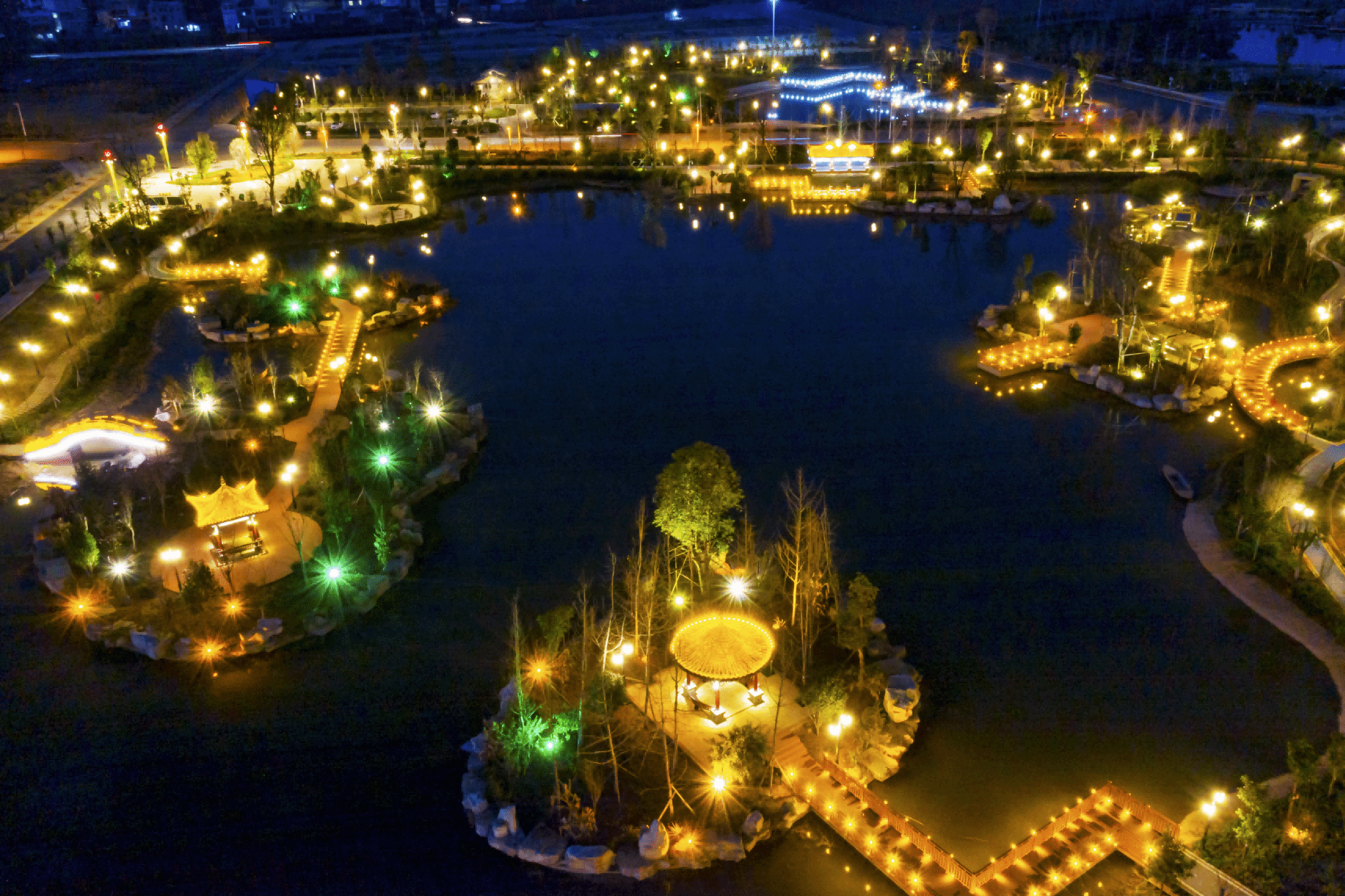 (蜻蛉湖、东塔湖夜景)