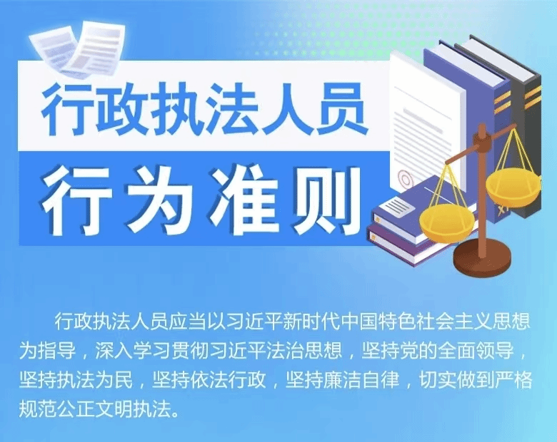 行政执法一头连着政府,一头连着群众,直接关系群众对党和政府的信任、对法治的信心。为深入学习贯彻习近平法治思想,推动严格规范公正文明执法,2025年11月3日,司法部发布《行政执法人员行为准则》,为行政执法人员划定行为边界、明确履职标尺。现将《准则》核心内容及普法要点解读如下,让法治光芒照亮执法全过程!