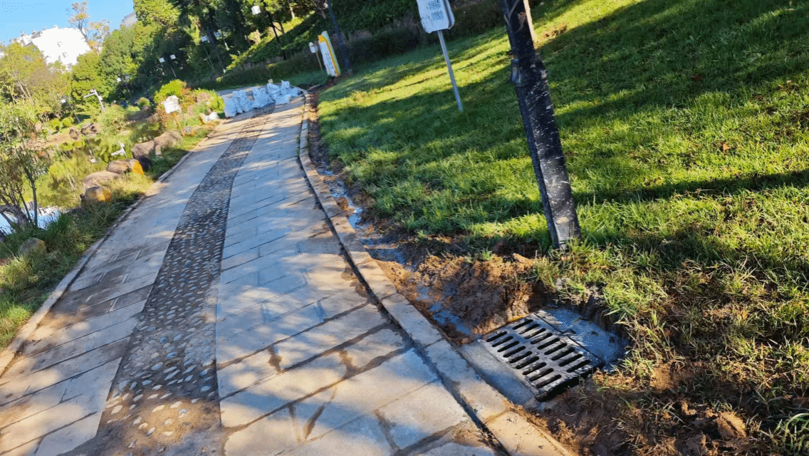 组织专业技术人员进行现场勘查,准确排查渗水源头、影响范围及路面受损情况,结合湖区实际,科学制定“收集引流+下穿导排”治理方案。工作人员合理规划作业区域,错开市民游园高峰,在游道沿线关键位置精准开挖并设置收集井,同步铺设下穿排水管道,形成“多点收集、集中导排”的排水体系,有效将路面积水引入湖区,从根源解决渗水困扰。施工全程严格落实安全管控,设置警示标志与防护围挡,并派专人现场监督,确保施工规范、质量达标。