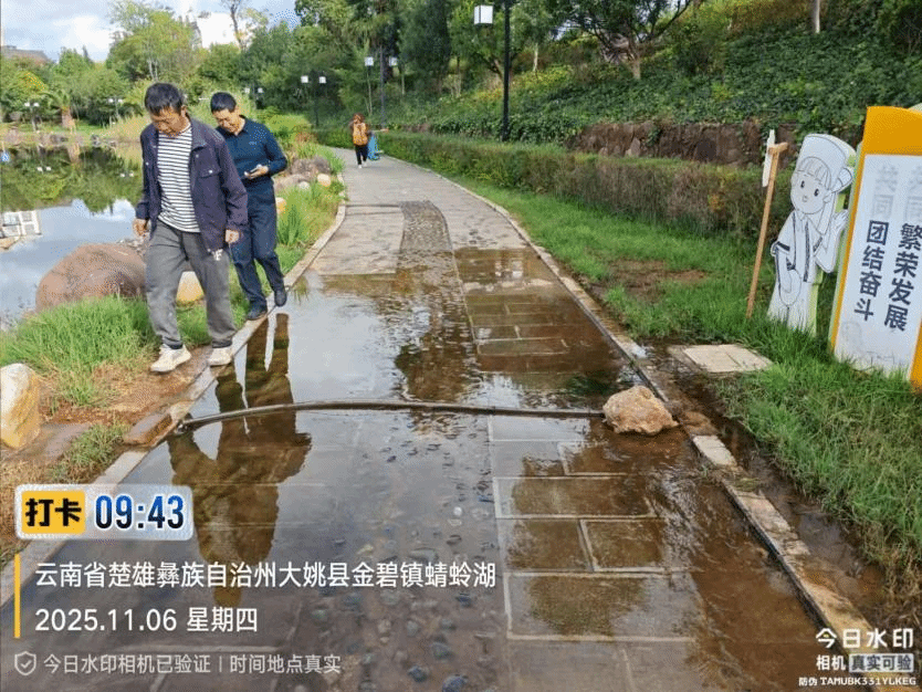 受今年降雨偏多影响,蜻蛉湖湖区游道出现渗水淹没现象,导致路面湿滑,给市民休闲出行带来安全隐患。为切实保障群众安全,大姚县住房和城乡建设局迅速响应,积极开展隐患整治工作,高效推进问题处理。
