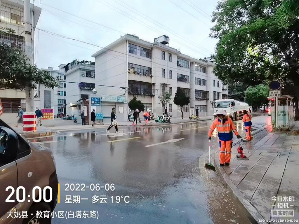 三是履职尽责,加大清扫。按照“一体式、全覆盖、精细化”的保洁作业体系要求,重点保障大姚一中周边区域环境卫生质量,增加作业频次,延长作业时间,安排机扫车、洒水车等作业车辆开启“静音”作业模式,减少噪音影响,对考点周边及主要道路进行不间断循环洒水降尘、降温作业,并加大全天候人工巡回清扫力度,保证考点周边环境卫生秩序良好,为广大考生营造良好的出行环境。做到发现乱扔垃圾及时清理,对垃圾桶、果皮箱、护栏、隔离带、花坛内、绿化带进一步实施精细化作业。重点加强对大姚一中学校周边垃圾桶、果皮箱的巡查保洁频次,采取不间断巡回保洁的作业模式,对存在满溢情况的垃圾桶、果皮箱及时进行清掏,保持环境卫生的持续整洁。加大管控力度,努力营造“安静、干净、有序、安全”的考试环境。