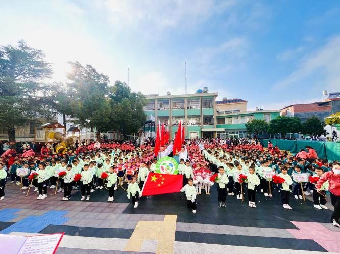 本次运动会在激昂的旋律中拉开帷幕。英姿飒爽的国旗队和会徽队迈着坚定的步伐护卫着庄严的国旗与象征运动精神的会徽入场,由红旗方阵组成的彩旗队迎风飘扬,为赛场增添了无限活力。小运动员们身着特色服装,高喊着响亮的口号,迈着稚嫩而有力的步伐依次走过主席台。在庄严的升旗仪式上,全体师生与家长肃立行注目礼,高唱国歌,爱国情怀在幼小的心田中扎根生长。