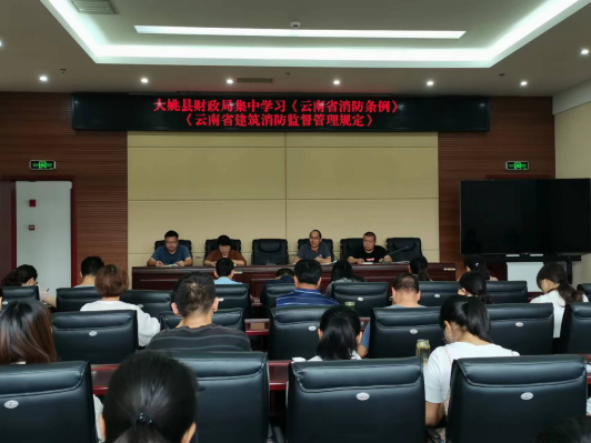 7月18日上午,大姚县财政局召开干部职工会议,专题学习了《云南省消防条例》、《云南省建筑消防监督管理规定》《云南省专职消防队伍管理办法》和《云南省火灾高危单位消防安全管理规定》。