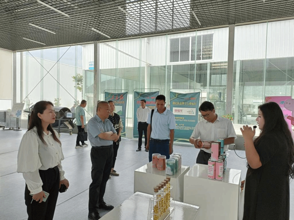考察团一行在公司董事局主席余楚华的陪同下,先后参观了公司自主研发设备展厅、“御福年”系列核桃油产品展厅、核桃生物产品展厅以及核桃一体化精深加工生产车间,随后在公司会议室召开招商洽谈会议。