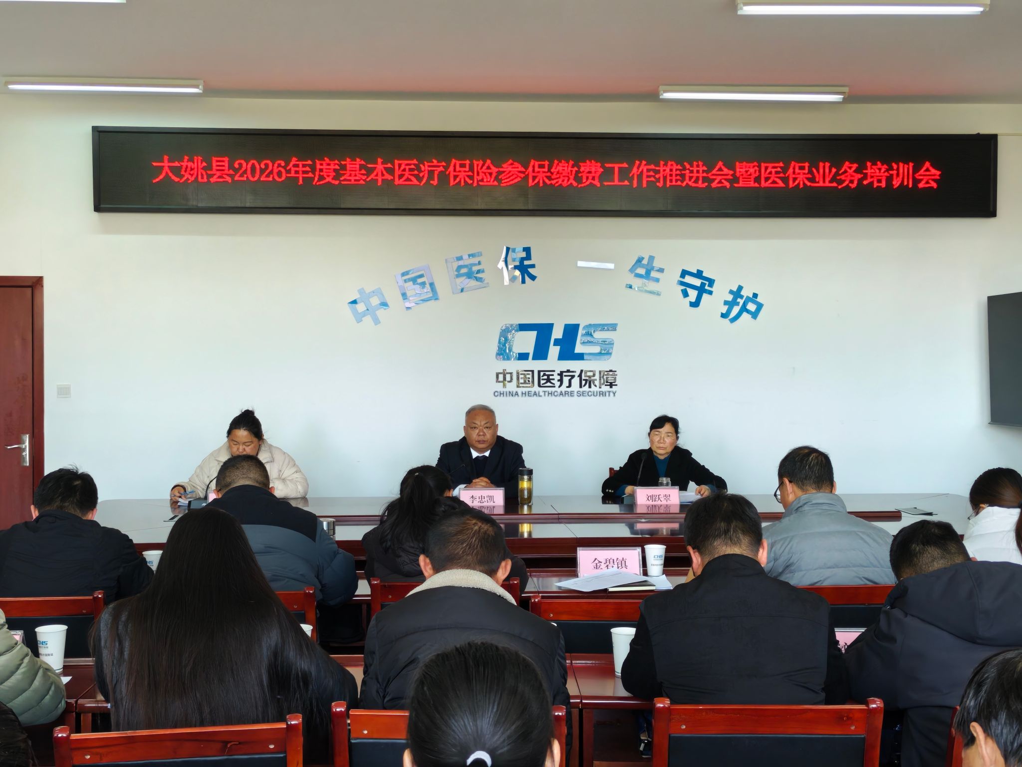 为进一步压实工作责任,推进全县 2026 年度基本医保参保缴费工作,大姚县于1月12日召开2026年度基本医保参保缴费推进会议暨医保业务培训会议。