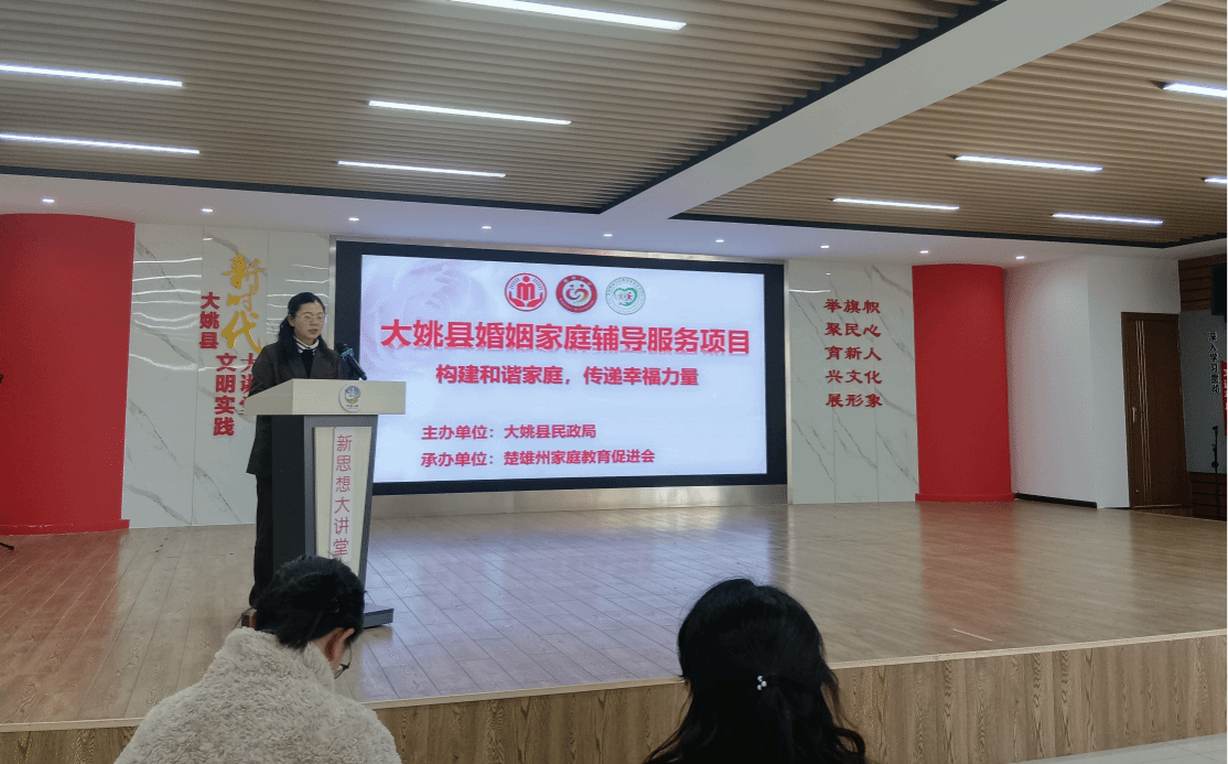 聚焦社会需求,服务家庭建设。为深入贯彻落实习近平总书记关于注重家庭家教家风建设的重要指示精神,推动《中华人民共和国家庭教育促进法》落地见效,大姚县民政局主动延伸服务触角,策划举办了本次专题活动。活动旨在回应现代家庭在沟通、教育、情感联结等方面存在的普遍困惑与需求,通过引入专业力量,为公众提供科学、实用的家庭关系指导,助力提升家庭内在凝聚力与幸福感,夯实社会和谐基石。
