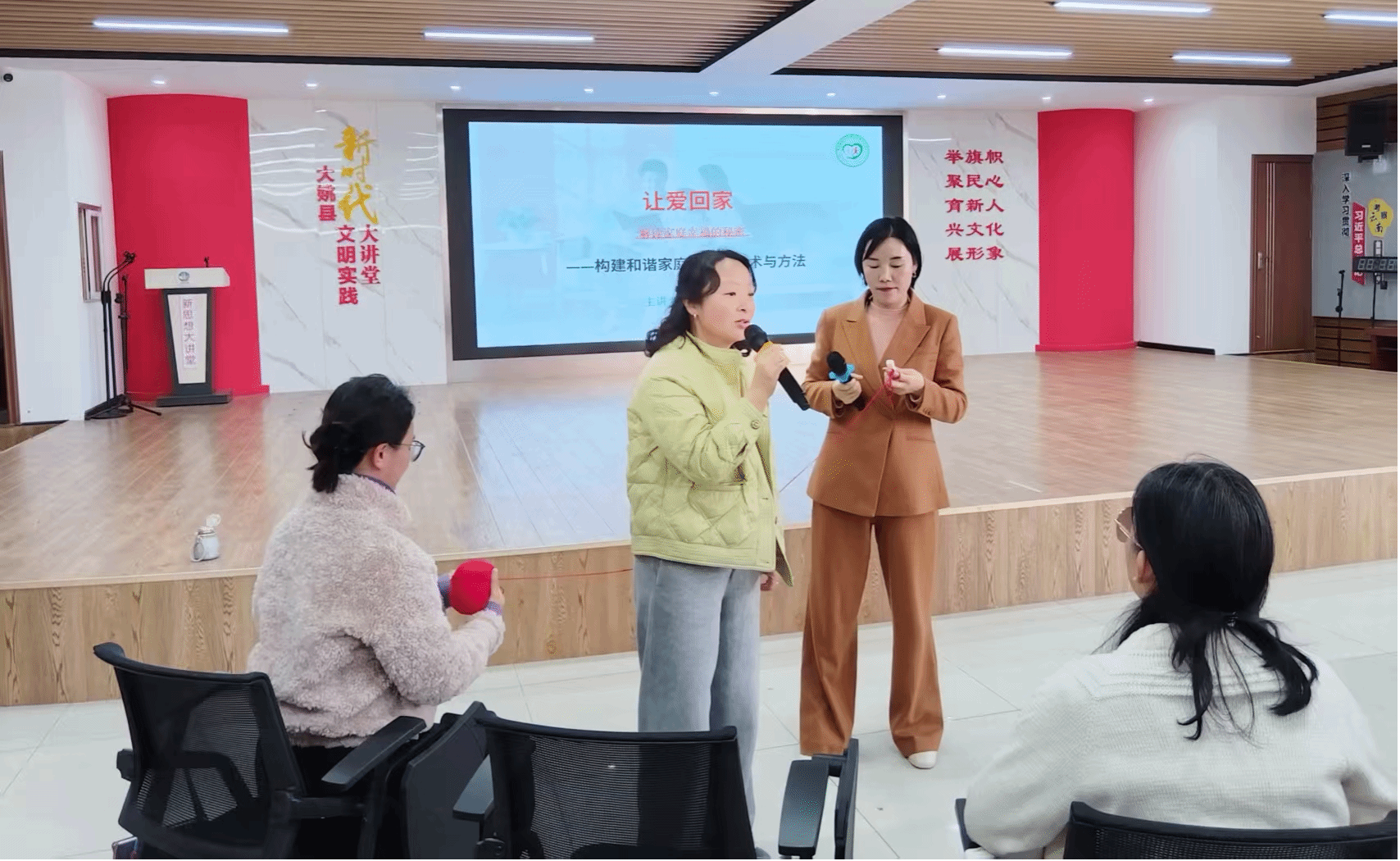 活动伊始,别开生面的“关系网”互动游戏迅速拉近了彼此距离。一根毛线球的传递,让参与者直观体会到家庭成员间“牵一发而动全身”的情感联结。王老师由此切入,借助“家庭系统排列”理念,深刻剖析了夫妻关系、亲子关系、代际关系的常见错位与矛盾根源,明确提出 “夫妻关系是家庭定海神针” 的核心观点,强调建立正确“爱的序位”对家庭稳定的重要性。