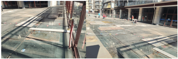 大姚县住房和城乡建设局在深入开展安全生产常态化检查时,发现位于城区主干道上方的某地产项目配套玻璃栈桥发生多块玻璃严重破损。该栈桥紧邻交通干道,日常人流、车流量大,破损玻璃随时存在脱落风险,严重危及过往行人、车辆通行安全,安全隐患极为突出。