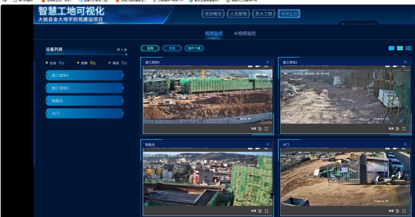 为进一步破解传统工地管理中的安全监管盲区、资源统筹不足、环境污染及协同效率低等难题,大姚县自去年11月起,积极推进“互联网+智慧工地”监管平台建设,着力构建覆盖施工全过程、全要素的智能化监管体系,推动工地管理模式从“人防”向“技防”转型升级。