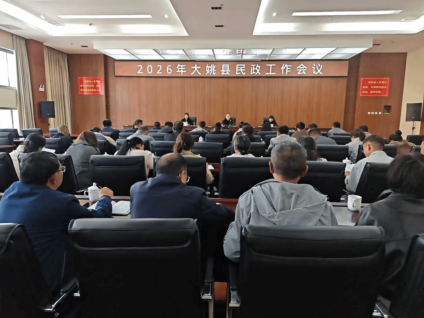 近日,大姚县召开2026年全县民政工作会议,深入学习贯彻习近平总书记关于民政工作的重要论述,全面落实全国、全省、全州民政工作会议精神,总结回顾“十四五”及2025年民政工作成效,分析存在问题,安排部署2026年重点任务。县民政局领导班子、各乡镇分管领导及社会事务办主任、养老机构负责人参加会议。