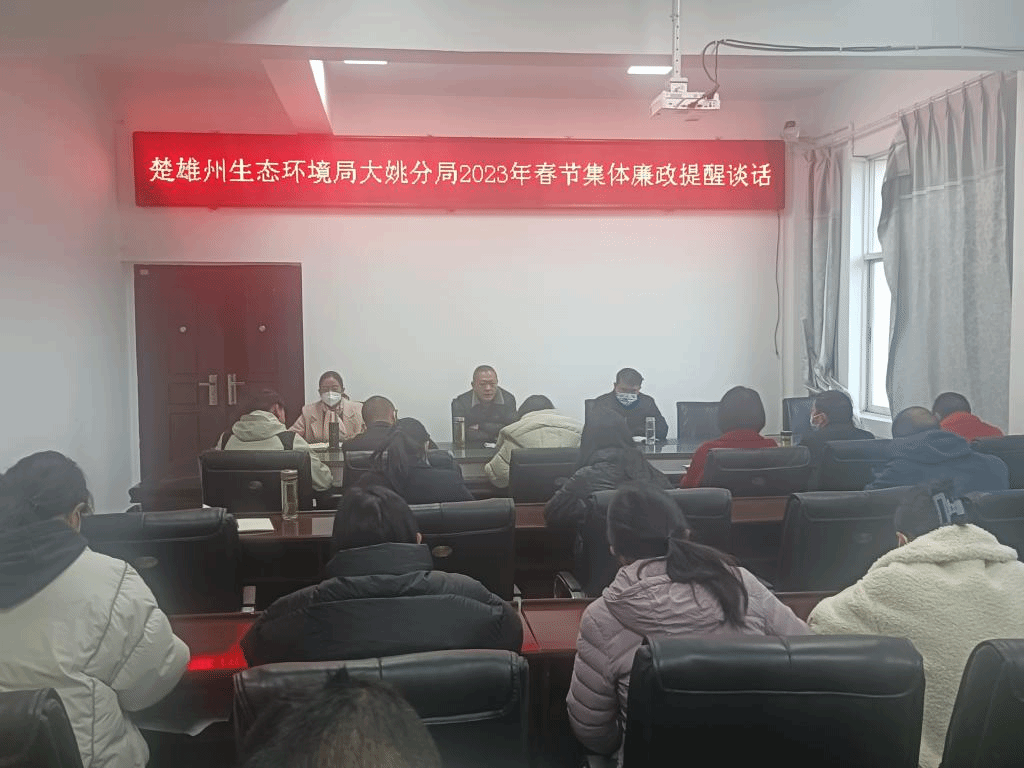 2023年1月16日,大姚分局党组组织全体干部职工开展春节前集体廉政谈话。会上,党组书记、局长钟学能同志以“严肃政治纪律 严守政治规矩 把牢政治底线 写好人生答卷”为题对全体干部职工进行了提醒谈话。