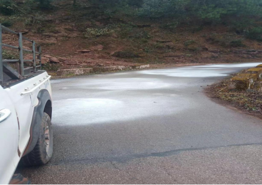 春节收假第一天,大姚县迎来一次强降温天气,造成我县县道部分路段不同程度出现路面结冰现象,给节后返岗人员出行带来极大安全隐患。大姚县地方公路管理段迅速启动道路结冰处置预案,安排公路养护人员对县道公路开展道路结冰安全隐患排查,经排查,县道瓦拉公路昙华乡金山垭口路段及湾碧乡冶基厂路段结冰较为严重,随后,公路养护人员立即开展道路除冰防滑保畅工作。
