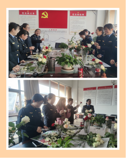 随后,女同胞们一改往日严肃沉稳的工作形象,个个精神抖擞,奋勇争先投入“插花活动”中。活动现场其乐融融,女同胞们边交流边探讨,在欢笑声中,每个人都把原本普通的花草,经过自己的细心打磨,变成独一无二的花艺作品。一盆盆错落有致、造型精雅的花篮展现在大家面前,大家纷纷拍照留念,在创造美、感受美的过程中度过了一个愉快、难忘的节日。