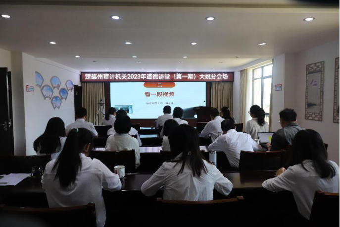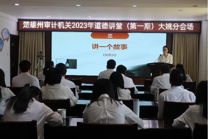 3月24日下午,楚雄州审计局开展以“爱党爱国”为核心的2023年第一期道德讲堂活动,大姚县审计局作为协办单位参与活动,大姚县审计局全体干部职工共28人参加。活动以“唱一首歌、讲一个故事、诵一段经典、做一番评议”的形式开展。