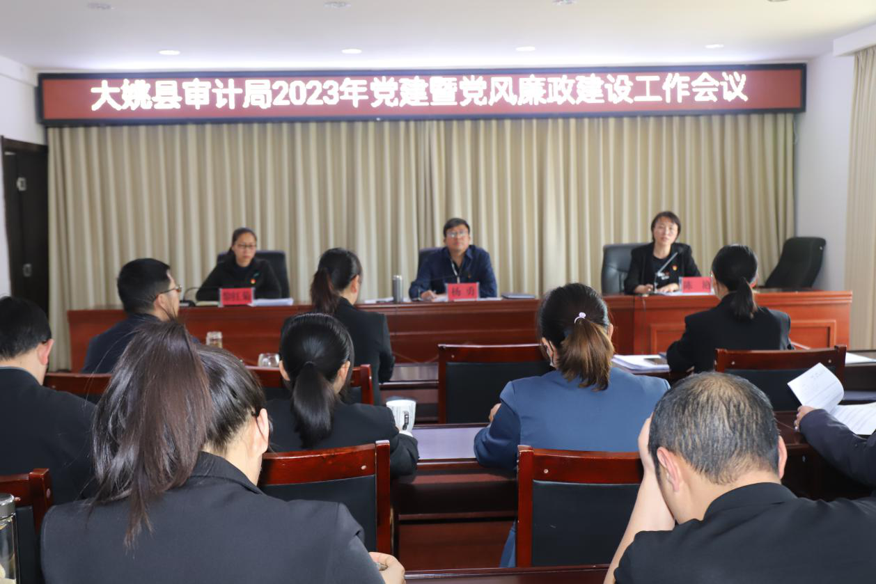 近日,大姚县审计局召开2023年党建党风廉政建设工作会议,传达学习党的二十大精神和中央、省、州、县纪委全会及省、州审计机关党建暨党风廉政建设工作会议精神,认真落实全面从严治党要求,全面总结2022年局机关党建暨党风廉政建设工作,研究部署2023年重点任务。