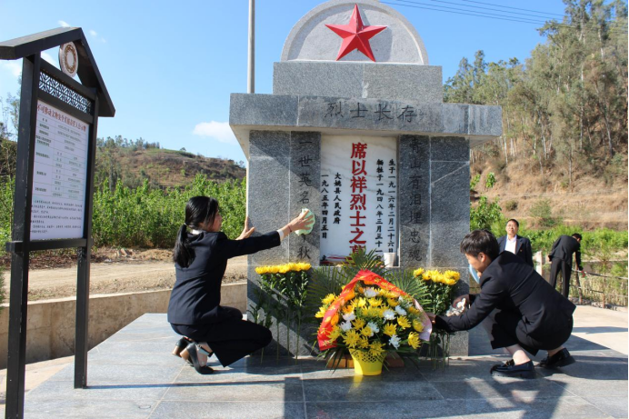 4月4日上午,大姚县退役军人事务局党组组织县、乡、村退役军人事务干部深入省级烈士纪念设施赵祚传烈士陵园和县级文物保护单位席以祥烈士墓开展祭扫活动。大家怀着追忆、崇敬、感恩之情向革命先烈鞠躬致敬、向革命烈士赵祚传和席以祥敬献鲜花、在墓体前集体重温入党誓词、擦拭墓碑、环境整治。党组负责人以“弘扬英烈精神,传承红色基因”为题讲授专题党课,激励系统干部要学习烈士追求真理、献身革命、忠诚于党、热爱人民的崇高精神。