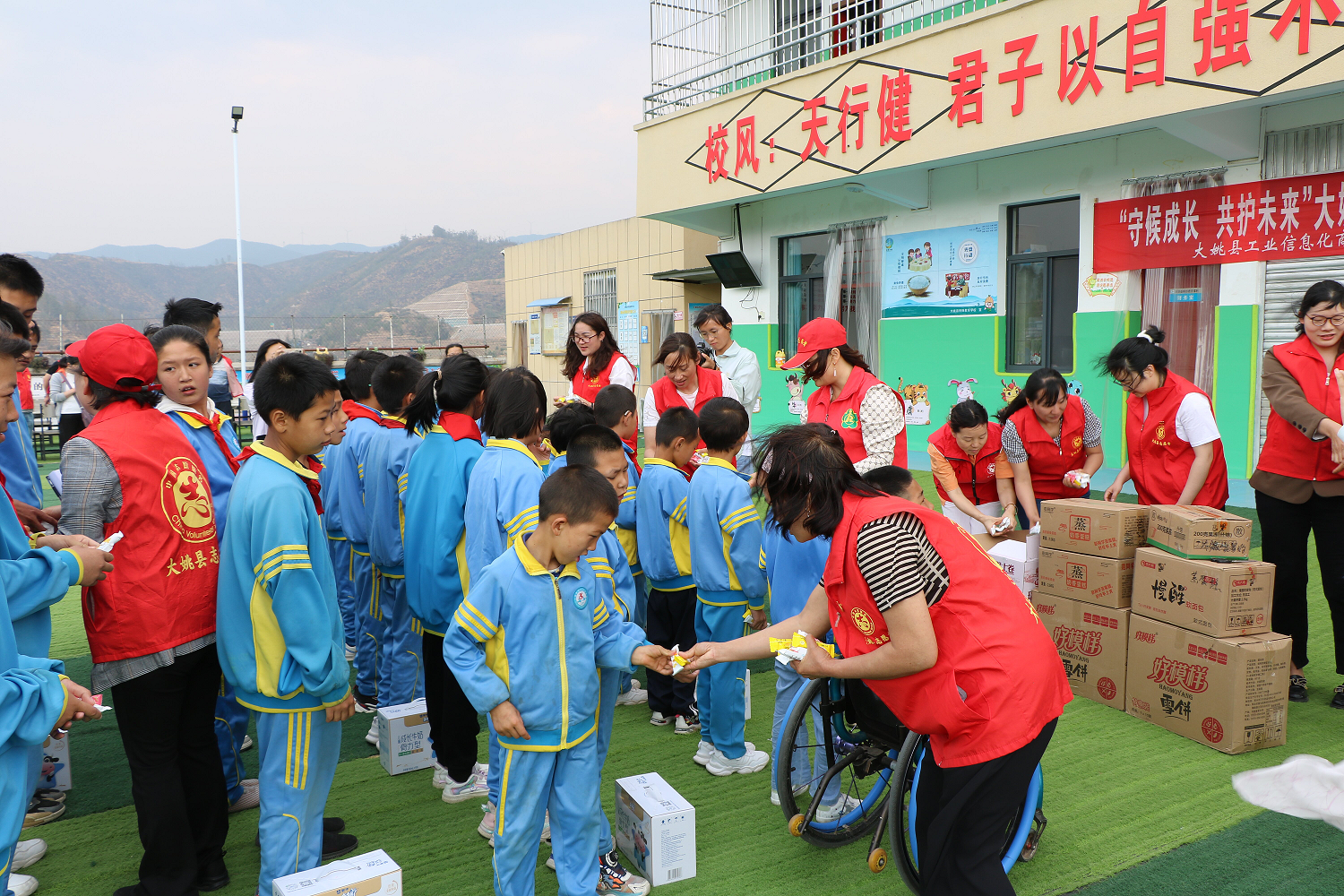 5月11日县残联、县工信局组织爱心企业、爱心人士组成帮扶慰问残疾儿童志愿者队伍,到县特殊教育学校开展“守候成长 共护未来”关爱残疾儿童志愿服务活动,看望慰问和陪伴在校残疾儿童。活动邀请云南纳喜文化创意开发有限公司残疾绣娘赵开芹讲授励志故事,云南大姚祥华工业制造股份公司、中国移动大姚分公司5家企业分别向县特殊教育学校捐赠了各2000元合计10000元的慰问金及爱心物资。