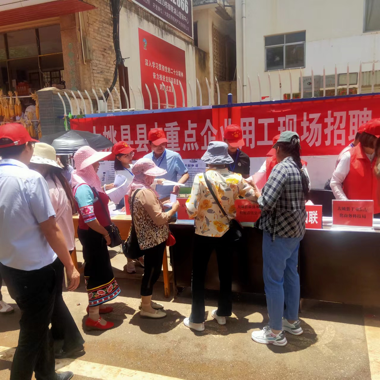 在现场招聘活动中,大姚县采取“集中招聘”与“入户发动”的方式双向发力、面对面招聘,做到信息宣传精准到户、岗位推荐具体到人。一方面瞄准乡镇重要活动和“赶集日”这一重点时段,在人流相对集中、群众关注度较高的区域设点开展现场招聘;另一方面发挥全县13支就业服务工作队力量,将用工信息带入村、组、户,面对面宣传用工信息、面对面排查务工意向、面对面动员外出务工,尤其是脱贫劳动力、易地搬迁安置点劳动力、零就业家庭等重点群体。