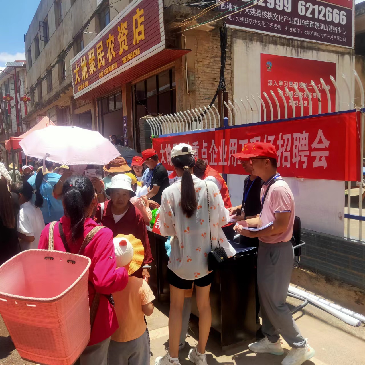 5月26日,农历四月初八,大姚县龙街镇人声鼎沸、人头攒动、热闹非凡,来自四面八方的各族群众齐聚龙街,欢度全县十大传统民族节日之一龙街“太子会”。在集镇的一隅,大姚县县内重点企业用工现场招聘会正在举办,成为一道靓丽的风景线。
