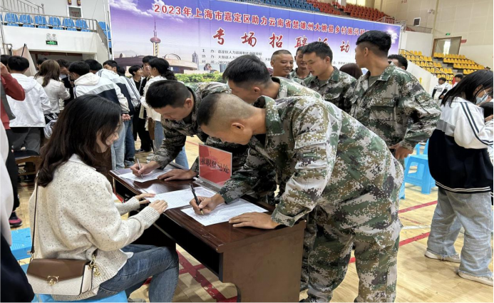 为全面落实退役军人就业创业政策,满足退役军人就业需求,拓宽退役军人就业渠道,实现退役军人充分稳定就业,6月12日上午,县退役军人事务局联合县人力资源和社会保障局在县体育馆举行2023年上海市嘉定区助力楚雄州大姚县乡村振兴对口支援专场招聘会暨退役军人专场招聘会,为退役军人和用工企业搭建对接平台。