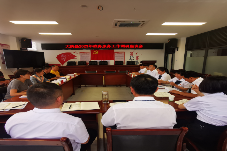 调研组一行先后到大姚县政务服务新中心各窗口、行政审批服务中心、公共资源交易中心和投资审批中介超市进行现场指导,详细了解政务中心窗口设置、人员事项进驻、帮办代办队伍建设及中介超市运行逆转等情况。通过座谈会的方式听取了大姚县政务服务“标准化规范化便利化”建设、“一件事一次办”、招商引资重大项目帮办代办、行政审批中介服务等工作情况汇报,各股室长在会上结合调研内容作了交流发言,重点汇报了存在问题及特色亮点。