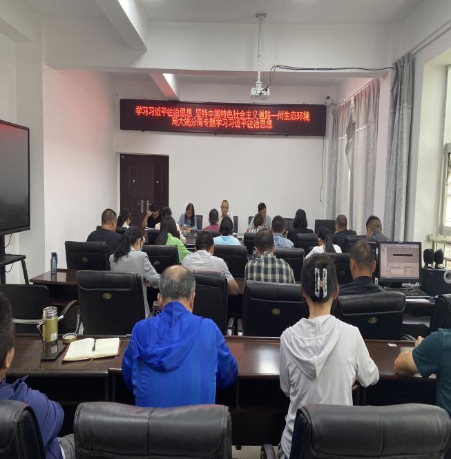 为践行习近平法治思想,自觉运用法治思维法治方式强化生态环境保护,7月25日,楚雄州生态环境局大姚分局召开党组理论中心小组学习会议,专题学习习近平法治思想,分局党组书记、局长钟学能主持本次学习,全体干部职职工参加。