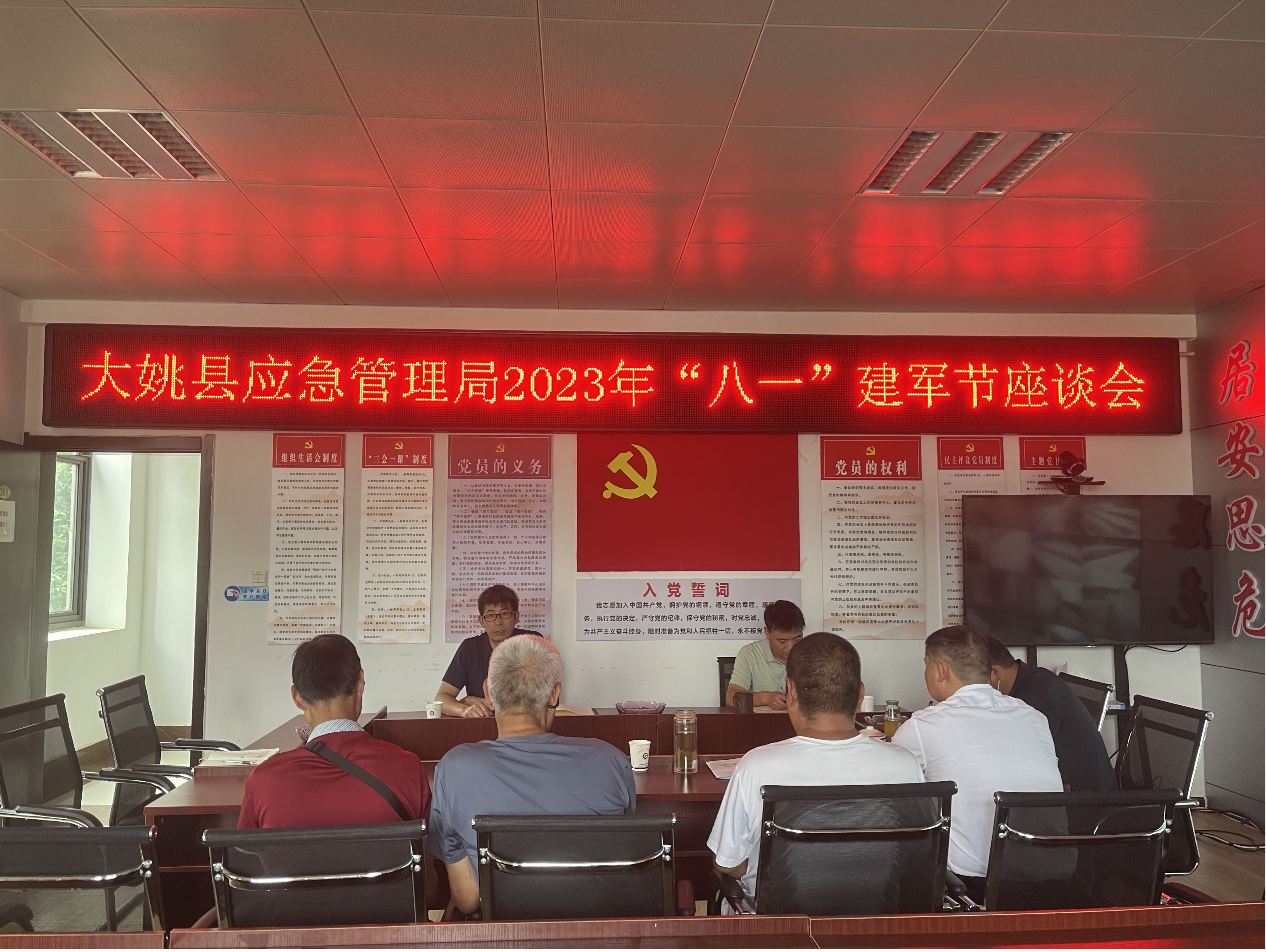 为深入学习贯彻落实习近平总书记关于加强军政军民团结的重要指示,进一步弘扬“拥军优属、拥政爱民”优良传统,7月31日,县应急局组织召开2023“八一”建军节座谈会,5名退役军人及单位主要领导、副局长参加了会议。