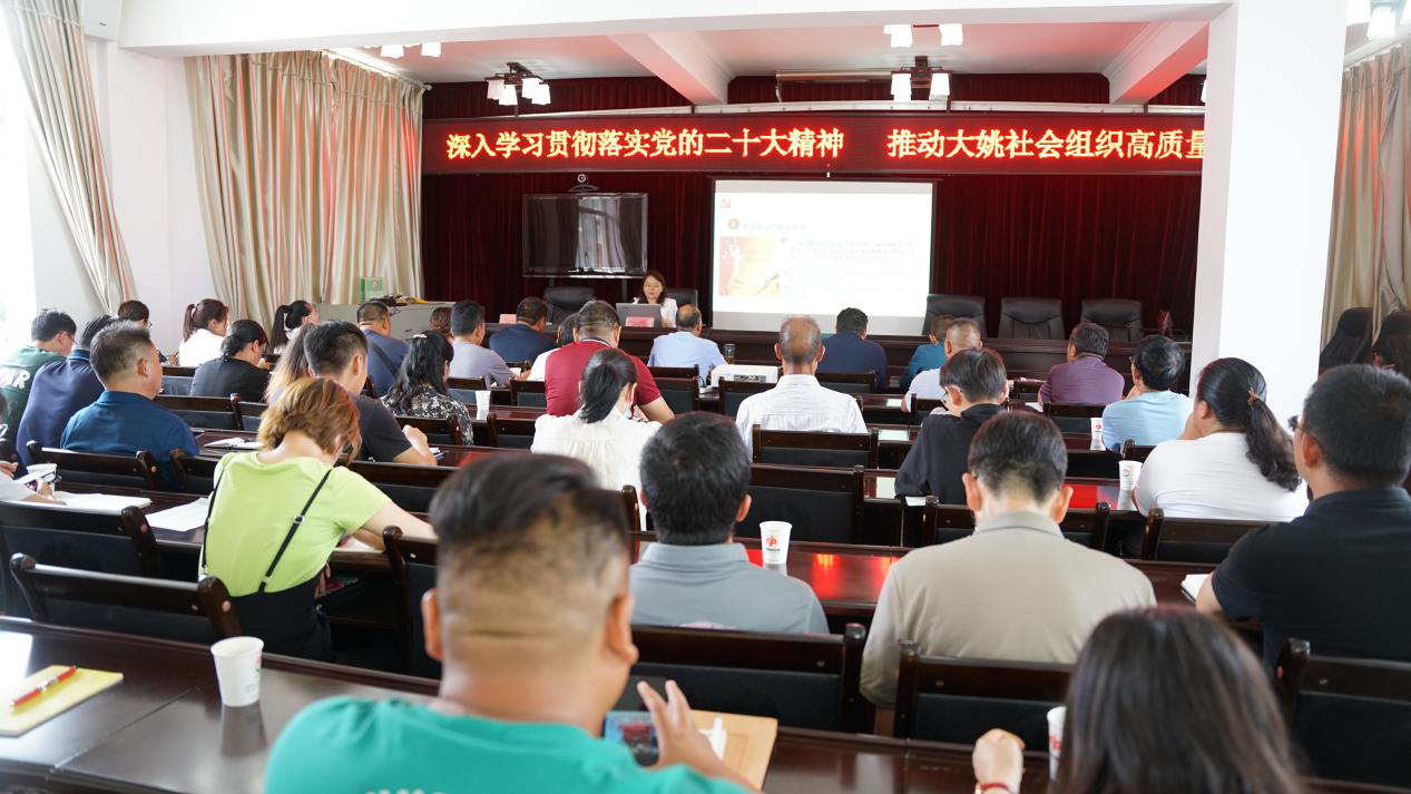 县委党校副校长紫学娟以“深入学习贯彻落实党的二十大精神,推动大姚社会组织高质量发展”为主题进行党的二十大精神专题辅导。
