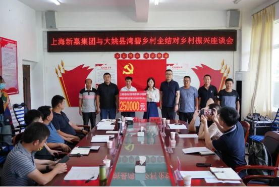 在同大姚县湾碧乡的“村企结对”乡村振兴座谈会上,高琼川代表新嘉集团(区供销社)向湾碧乡捐赠了“村企结对”资金25万元和帮扶资金3万元。